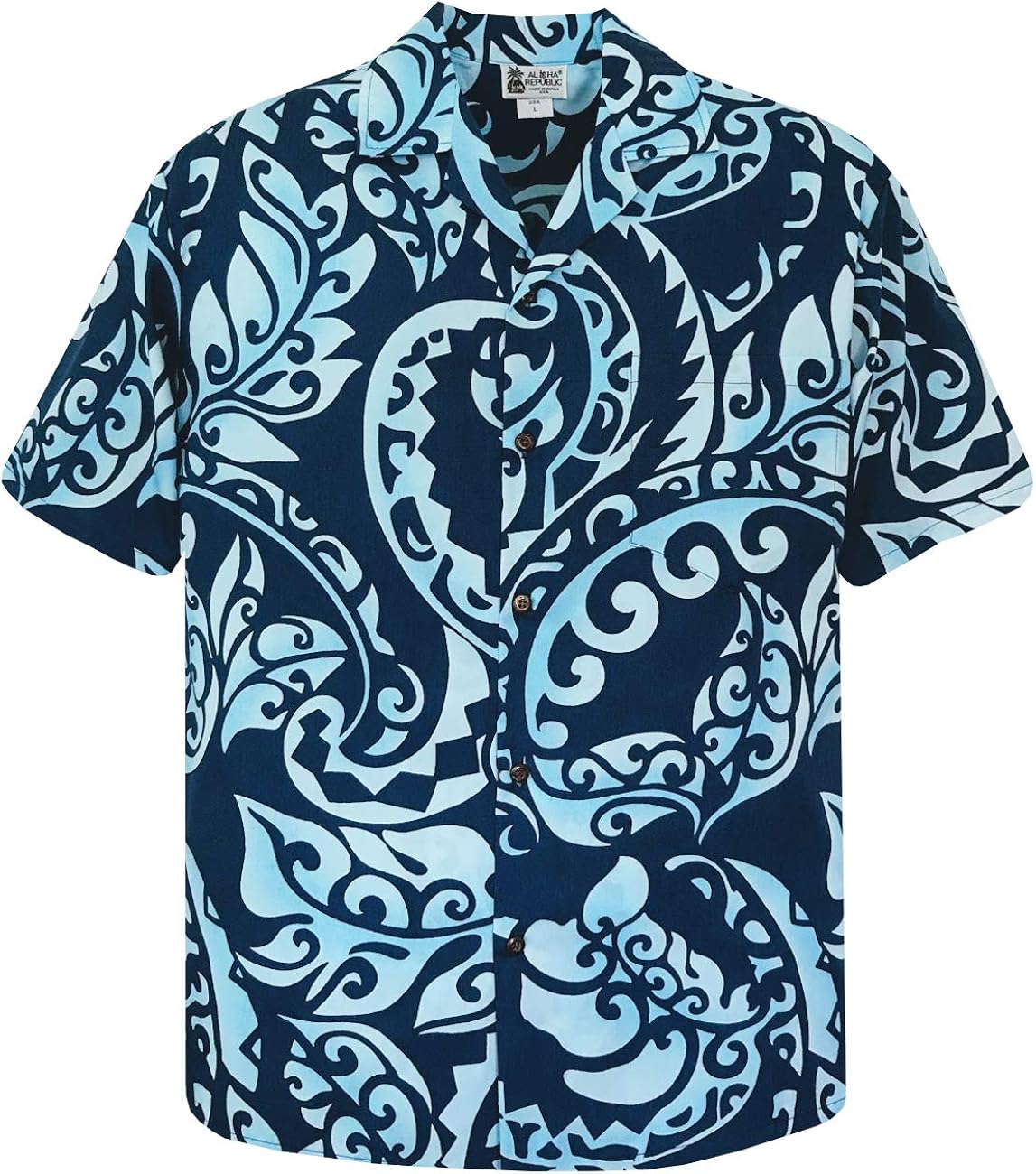 Aloha Republic Kanaka Tribal Tattoo Men S Hawaiian Shirt At Amazon