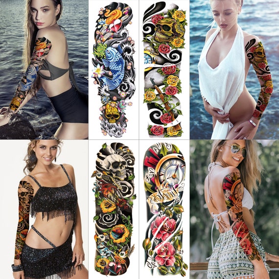 Manche Tatouage Temporaire Faux Tatouage Manche Plein Bras Etsy